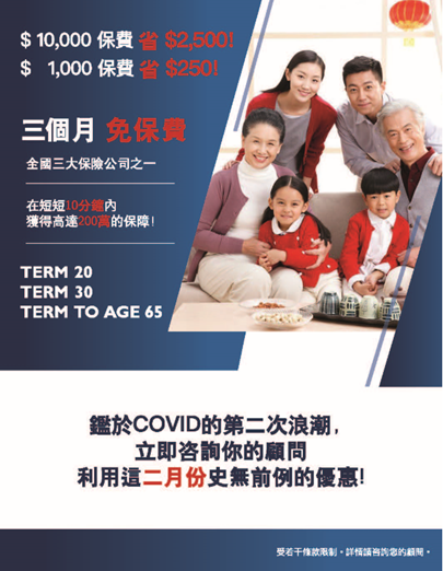Canada Life has announced to extend the promotion.  The last eligible date for application submission is March 19, 2021.  As previously mentioned, Canada Life is offering free three months premium on qualifying, new term 20, term 30 and term-to-age-65 policies, in BC.  Business from other provinces will enjoy four months premium free.   This is an unprecedented offer and there are also updates on SimpleProtect to make your application process smoother. A client can get $2 million in coverage in just 10 minutes! Watch this video if you do not know how to use SimpleProtect.  Details as below.