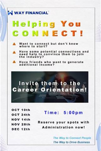 In addition to generating residual income from Profit Sharing on your connections, you will be rewarded with an extra 5% FYC bonus on your insurance business submitted 30 days before or after you connect a new member. So do more business and connect more members to get more reward amounts this year!