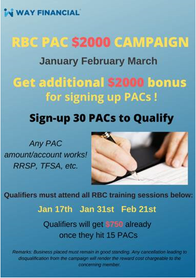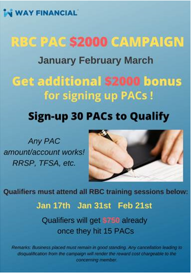 RBC PAC Campaign – $2,000 Lump-Sum Bonus (January to March 2020)