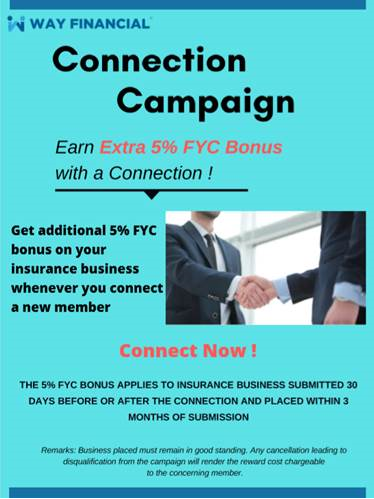 Connection Campaign 2020 – Earn Extra 5% FYC Bonus on Your Business with Every New Connection